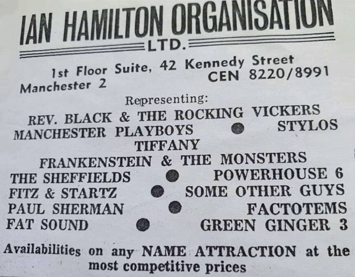A move to a new suite of offices in Didsbury took place in the latter half of the 60’s and and we were now expanding to include more cabaret artists as well as a full stable of bands.