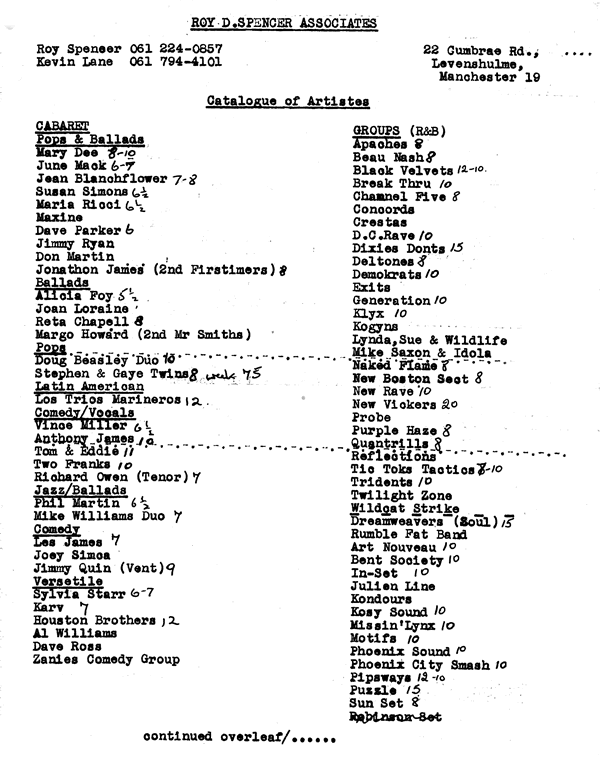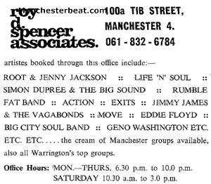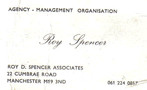 Roy also promoted a number of disco's in conjunction with DJ Kenny Edmunds, including Handforth Civic Hall and Worsley Court House. A weekly folk club in a Cheshire pub was another activity.