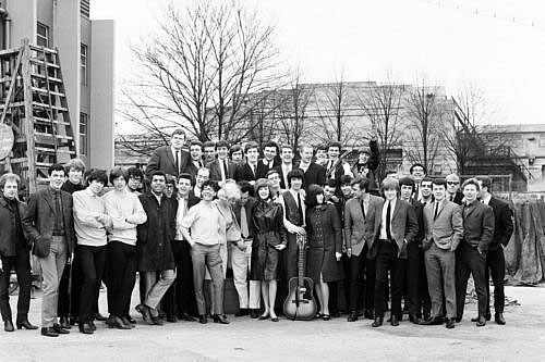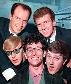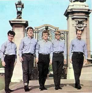 - 19-year-old Bernie Dwyer on drums (b. Bernard Dwyer, Wednesday, September 11, 1940, West Didsbury, Manchester 20, Lancashire, England d. Wednesday, December 4, 2002, St. Anne's Hospice near Heald Green, Cheadle, Cheshire, England of cancer).