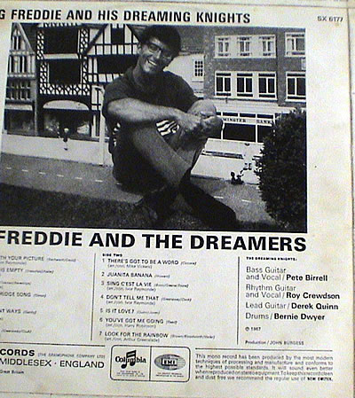 Regarding the "original" Dreamers. The lead guitarist before Derek Quinn was Ernie Molloy, who worked with Freddie at the dairy. Ernie declined to turn professional and stayed "on the milk" Last heard of he was still at Healds in Didsbury. I was at school with his brother, Johnny Molloy, an exceedingly good footballer!