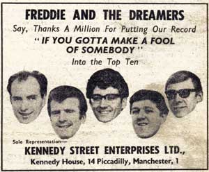 The next time that I saw Freddie he was selling sheet music from a stall on Blackpool Prom. Not long after that Freddie and the Dreamers blossomed forth; Fred still wasn't taking the music seriously.