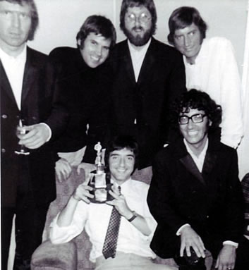 The night that we did our bit, one of the other groups that was on was 'The Red Socks' whose singer was this little curly haired loonie with big glasses. They were good but we thought that they were far too showbiz and weren't taking the music seriously. Of course they won.