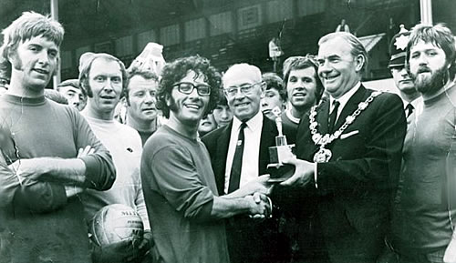 Off we all went to the ground & all the big stars appearing in Blackpool turned up including Mike Yarwood & Peter Gordino. Eric played for the Dreamers team - for my part I only ran up to the halfway line got severe cramp, was carried off & consigned to the commentary bench for the rest of the game along with Pete Birrel.