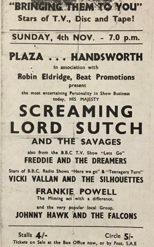 Friday, June 9, 1961: The King's Hall Ballroom, 11-13 Station Road, Cheadle Hulme, Stockport, Cheshire, England, 7.30pm - 11.30pm. Also on the bill: Joe Brown and the Bruvvers, The Gladiators, Johnny Peters and the Crestas.. Advertised in The Manchester Evening News as