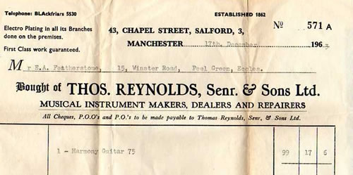"Mainly a 'brass band' shop but still one of the oldest music shops in town based in Salford. My Cousin Tom Cheadle worked there as an apprentice repairer from age 14 and stayed in the instrument business with Reynolds, Barratts and 'Band Instrument Supplies' in Leeds till he retired 6 years ago.