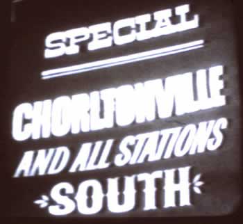 Blues fans who were lucky enough to get tickets were instructed to gather at Manchester’s Central Station at 7.30pm (prompt) that evening (not knowing where they were going) for a short train ride to the disused Wilbraham Road station. The train (an Ivatt Class 2MT 2-6-0 for rail enthusiasts) was fitted with a cowcatcher and a lamp on top of the smokebox to resemble an American steam loco.